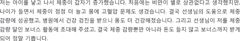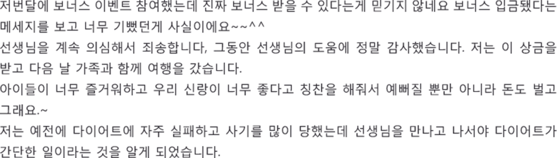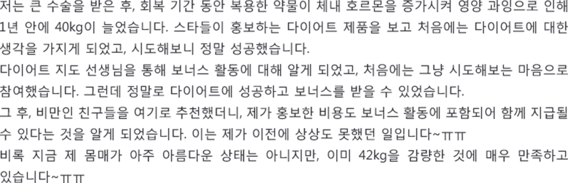 • 다이어트 달인 쇼 고객 다이어트 인터뷰